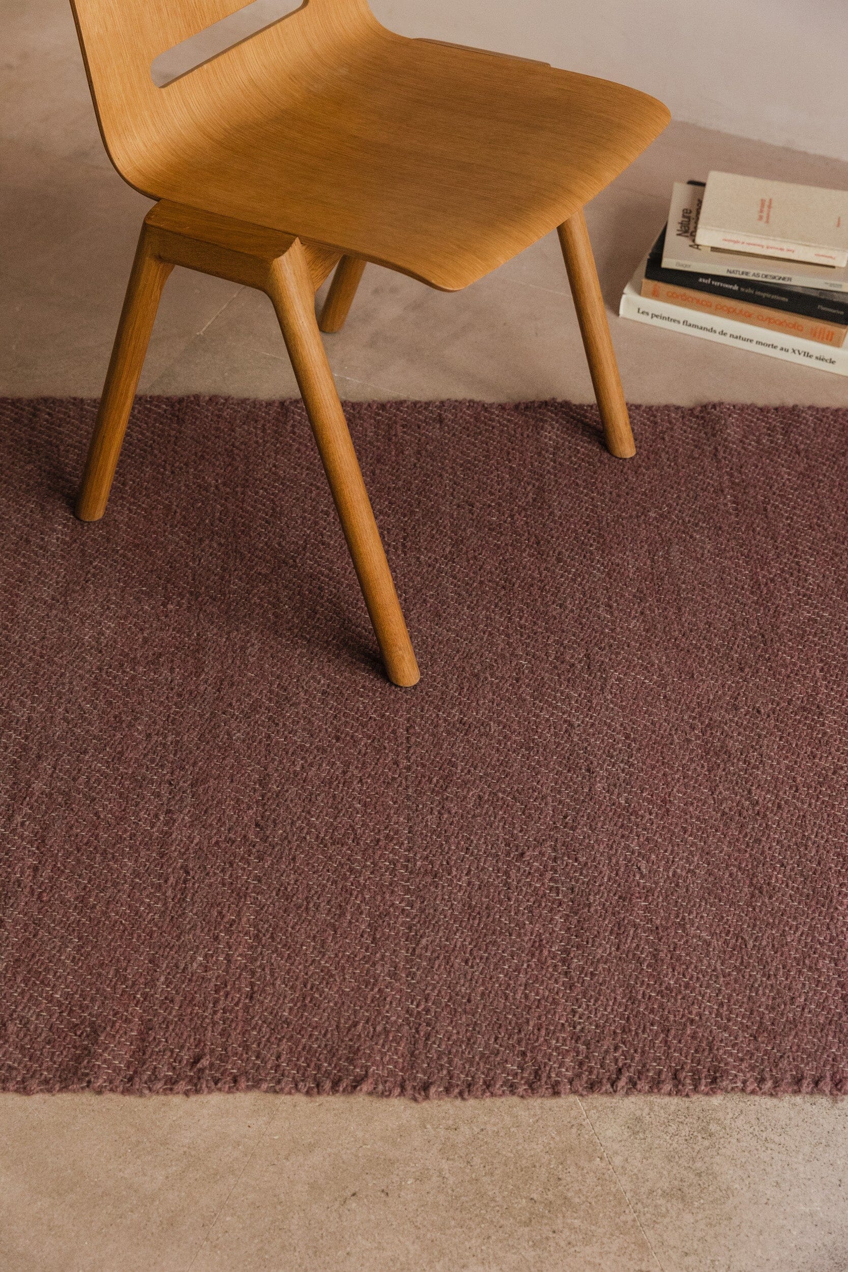 Pieza única tejida en espiga, con urdimbre de lino gris y trama de lana malva rosada, teñida con tintes naturales.