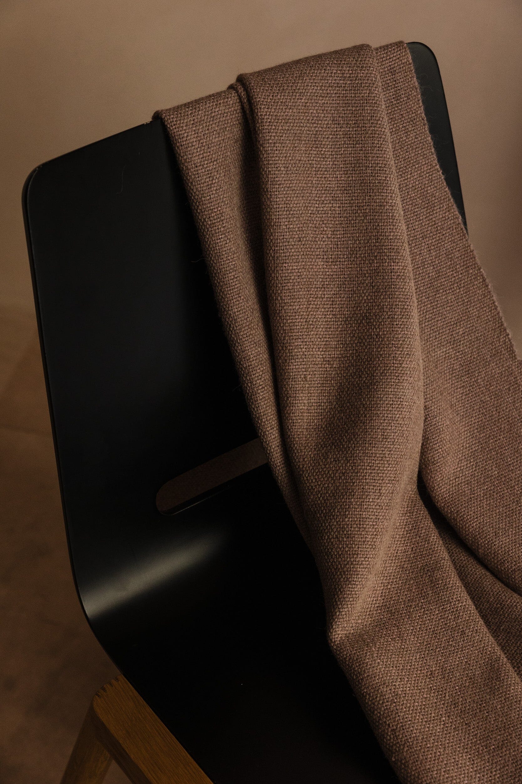 Pieza única en urdimbre de alpaca arena y trama de alpaca malva con tintes naturales.