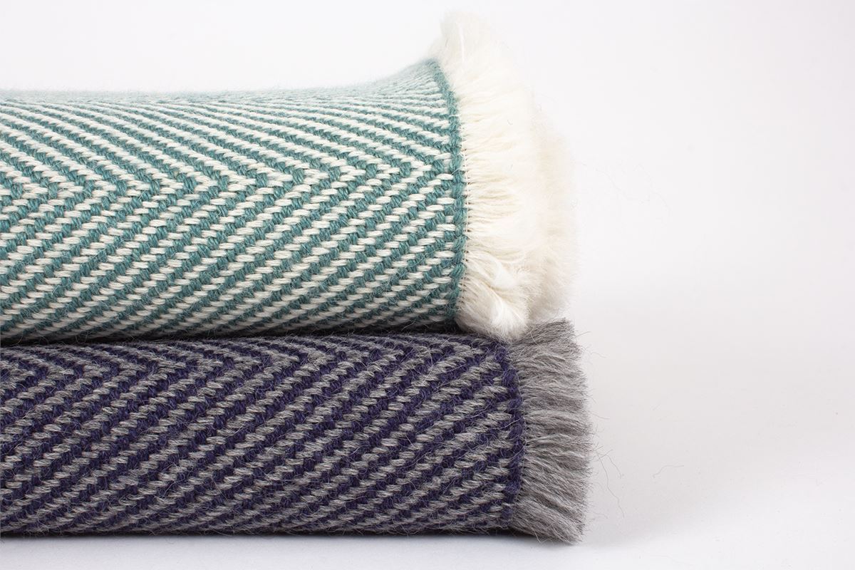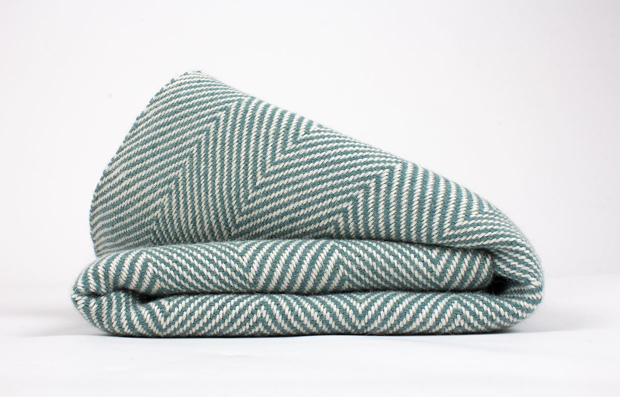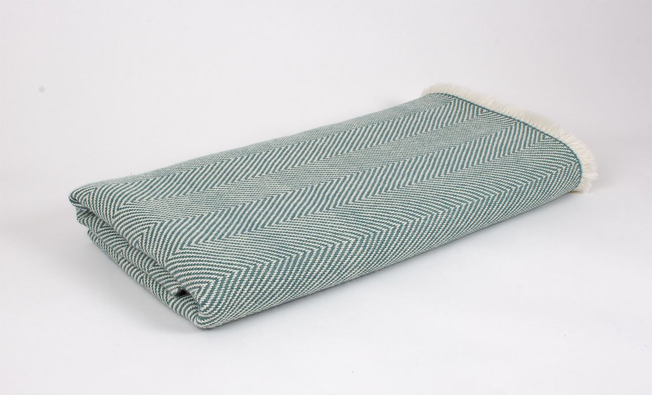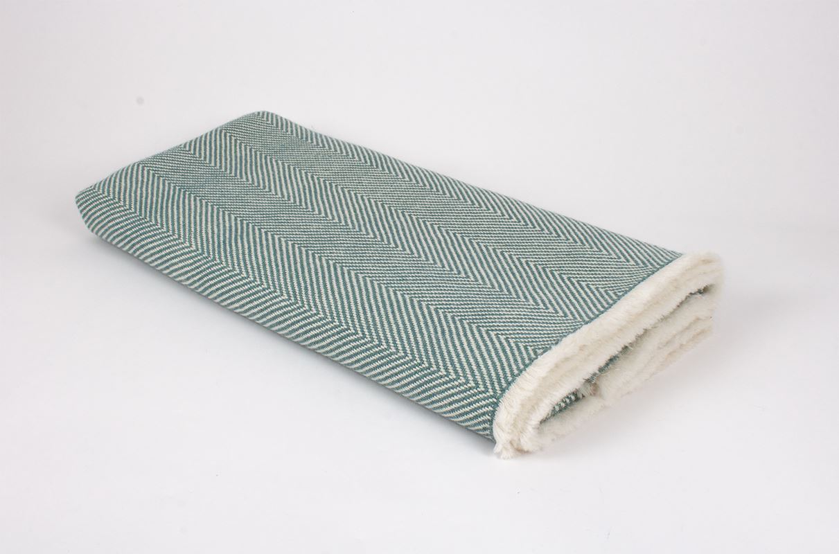 Pieza exclusiva elaborada de manera artesanal, con fibras naturales de primera calidad. Con urdimbre en alpaca blanca y trama en alpaca baby con seda color verde celadón.