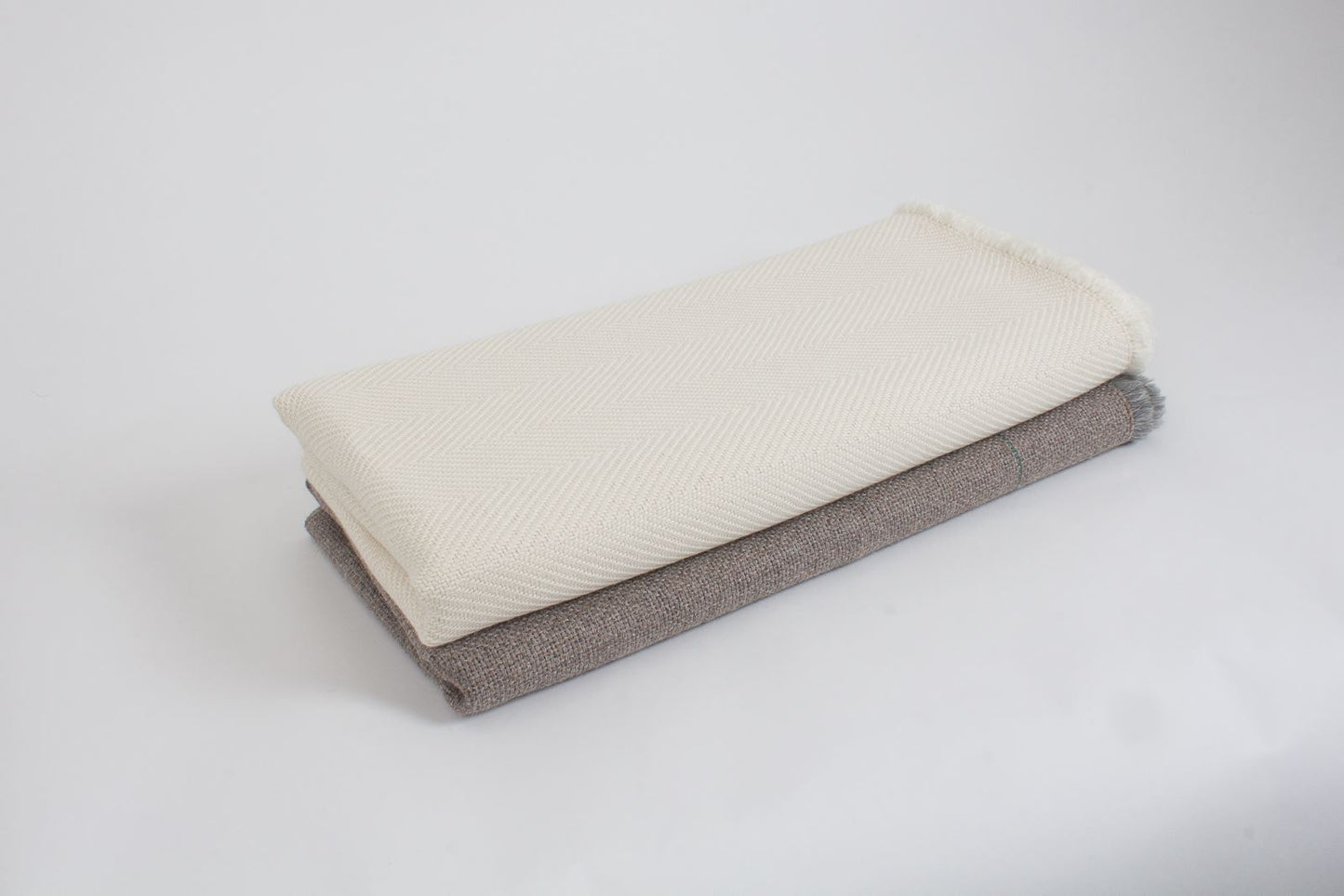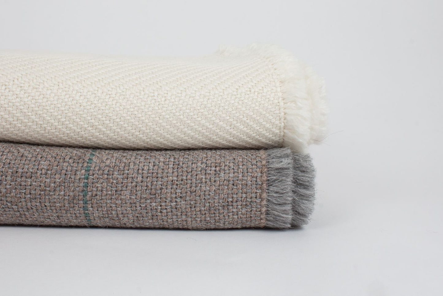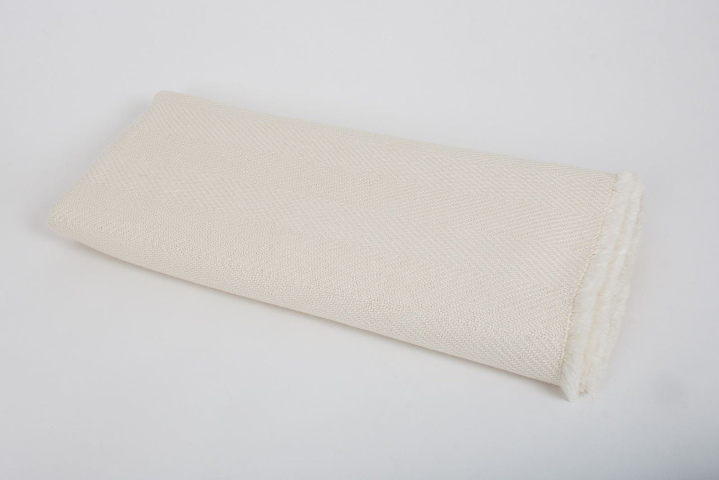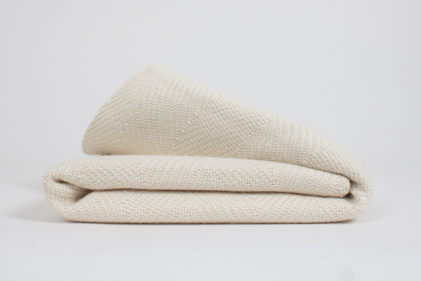 Pieza única con urdimbre y trama de alpaca baby con seda blanca.