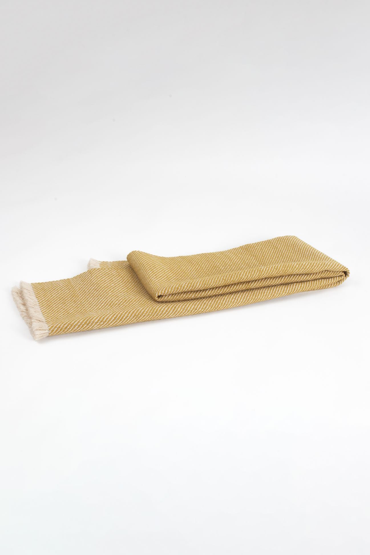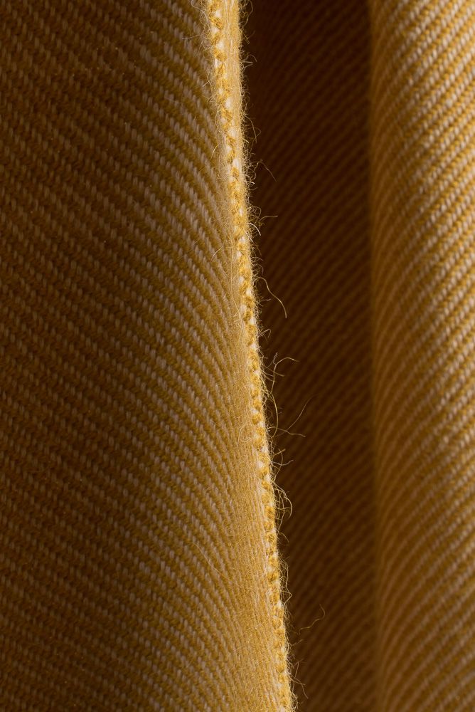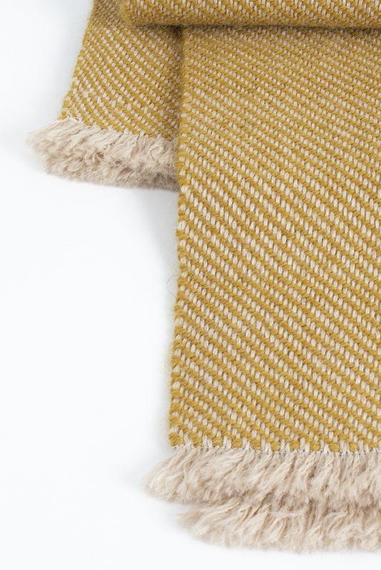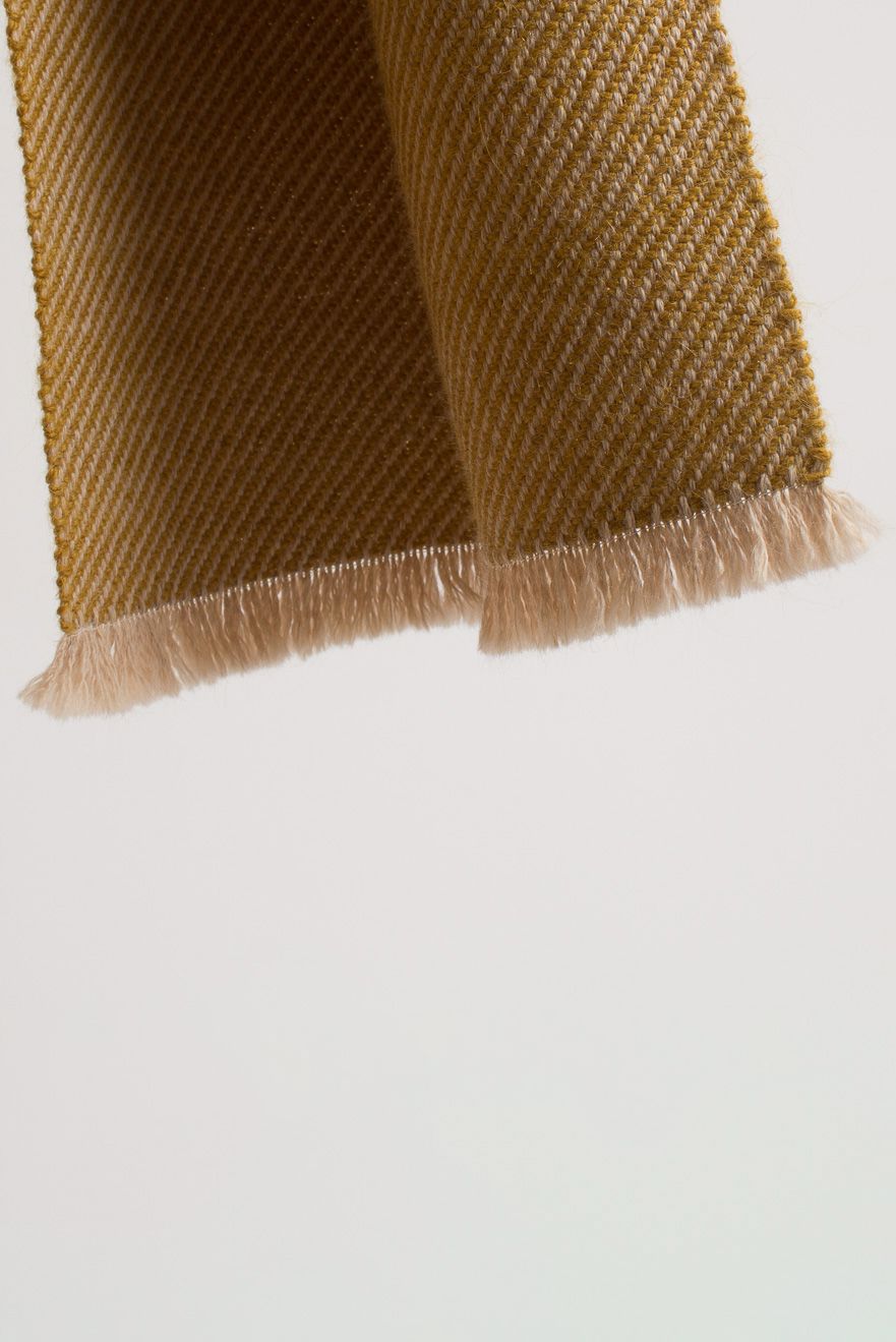 Pieza única con urdimbre de alpaca color nuez tostada y trama de alpaca amarilla.