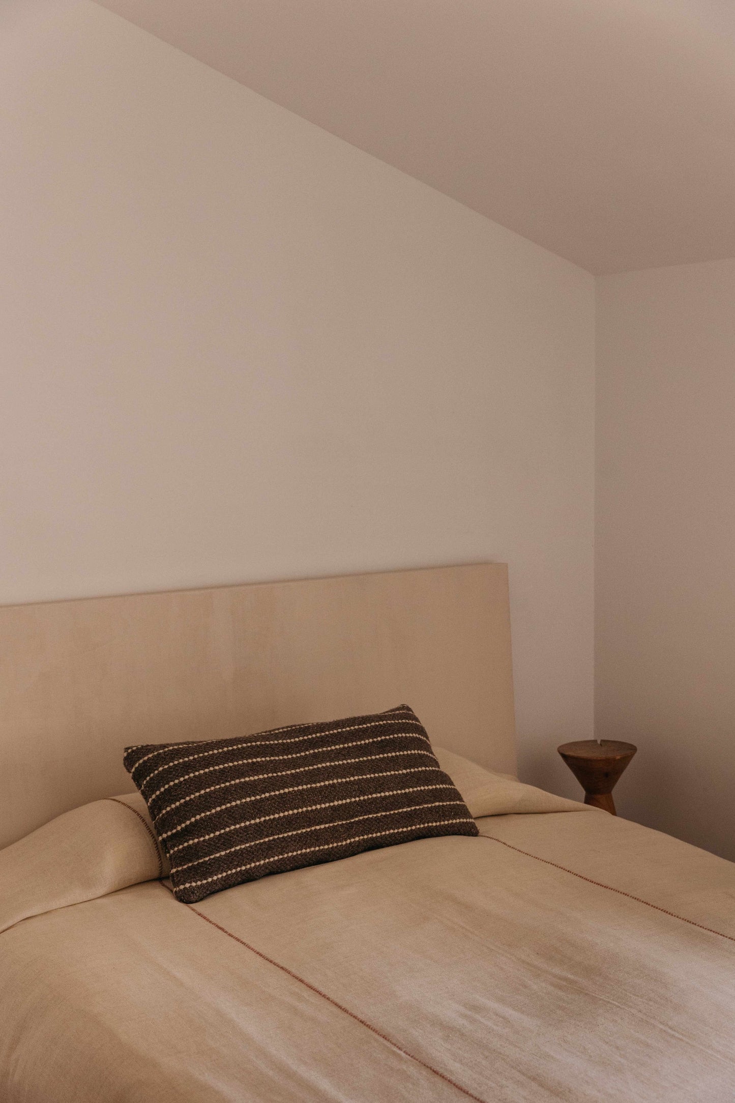 Todas las piezas de ÁBBATTE se elaboran íntegramente a mano, desde el tintado y el tejido en telares manuales hasta las terminaciones más minuciosas.