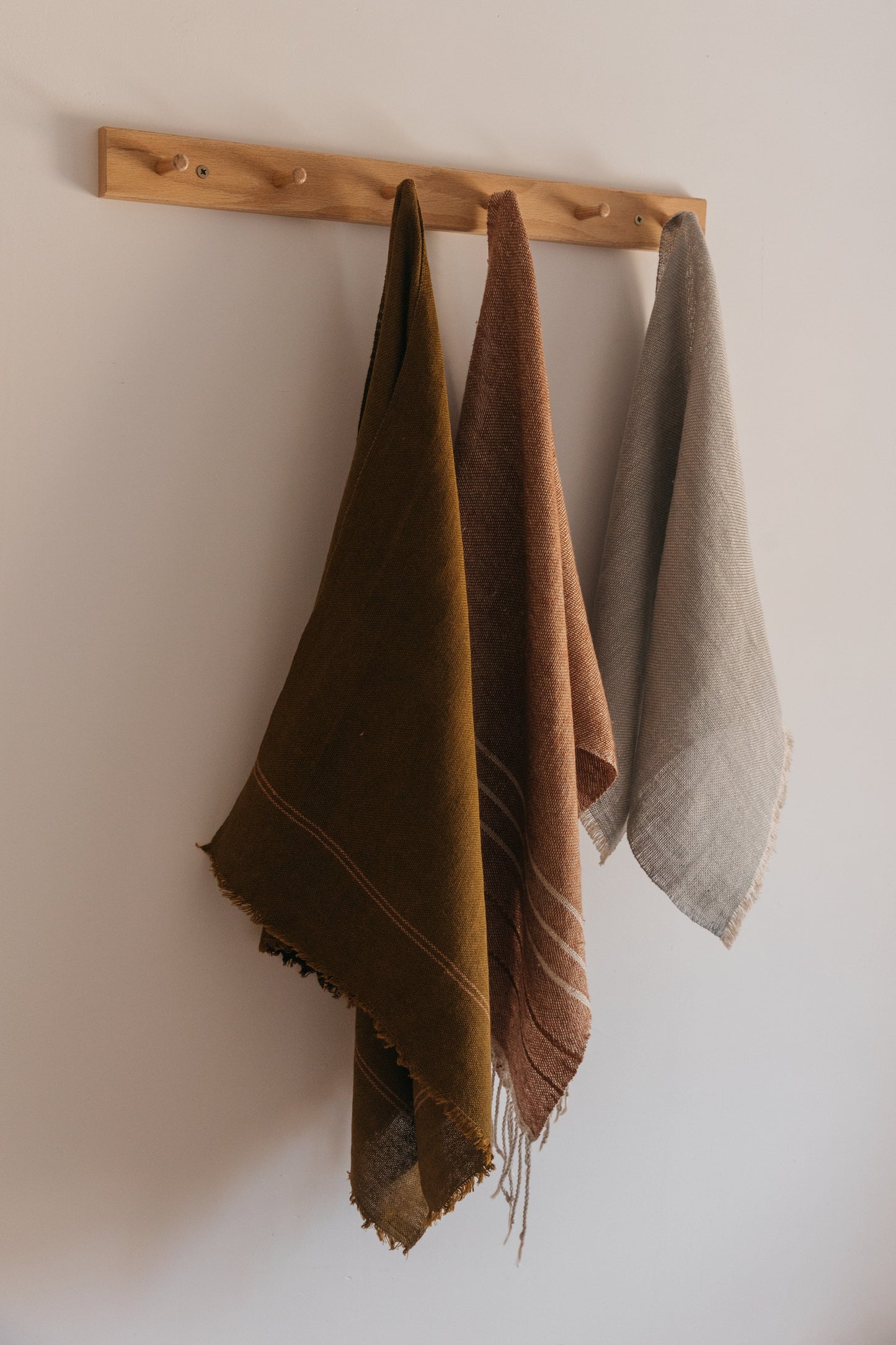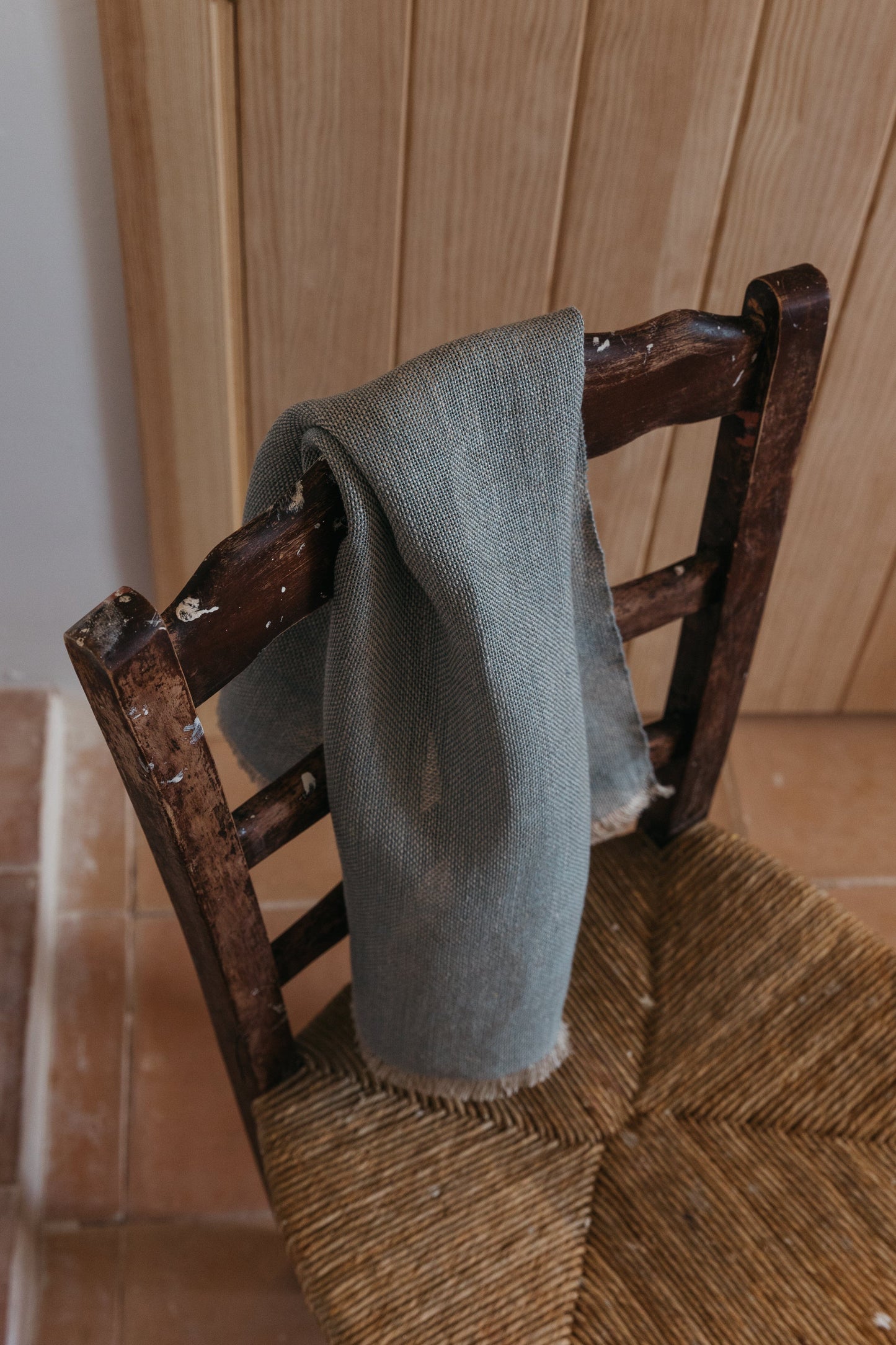 Todas las piezas de ÁBBATTE se elaboran íntegramente a mano, desde el tintado y el tejido en telares manuales hasta las terminaciones más minuciosas.