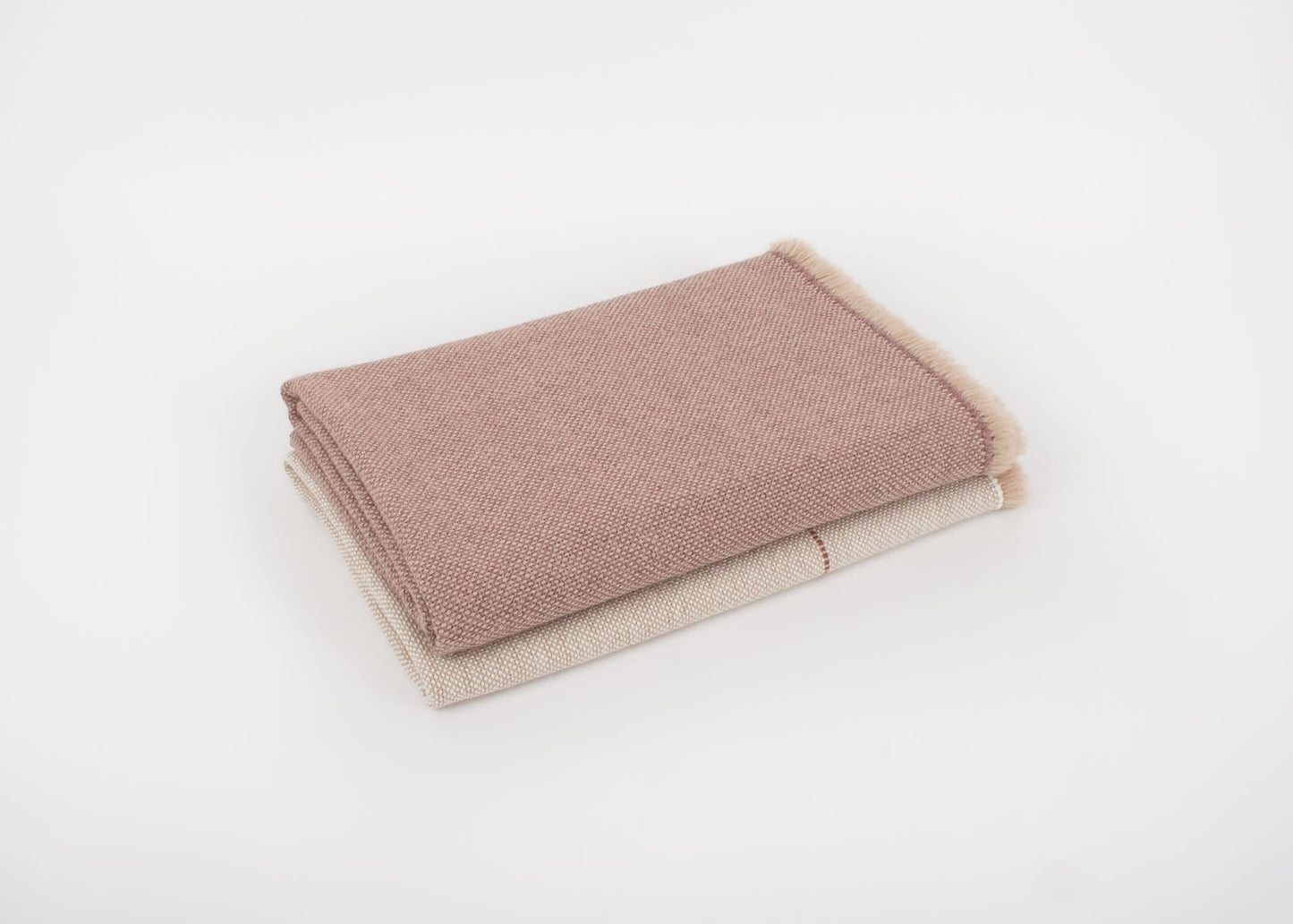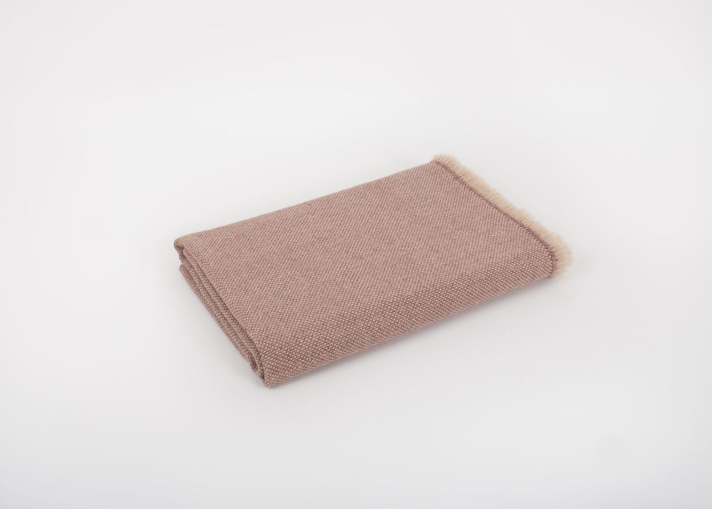 Manta de bebé en alpaca nuez tostada y rosa, con tintes naturales